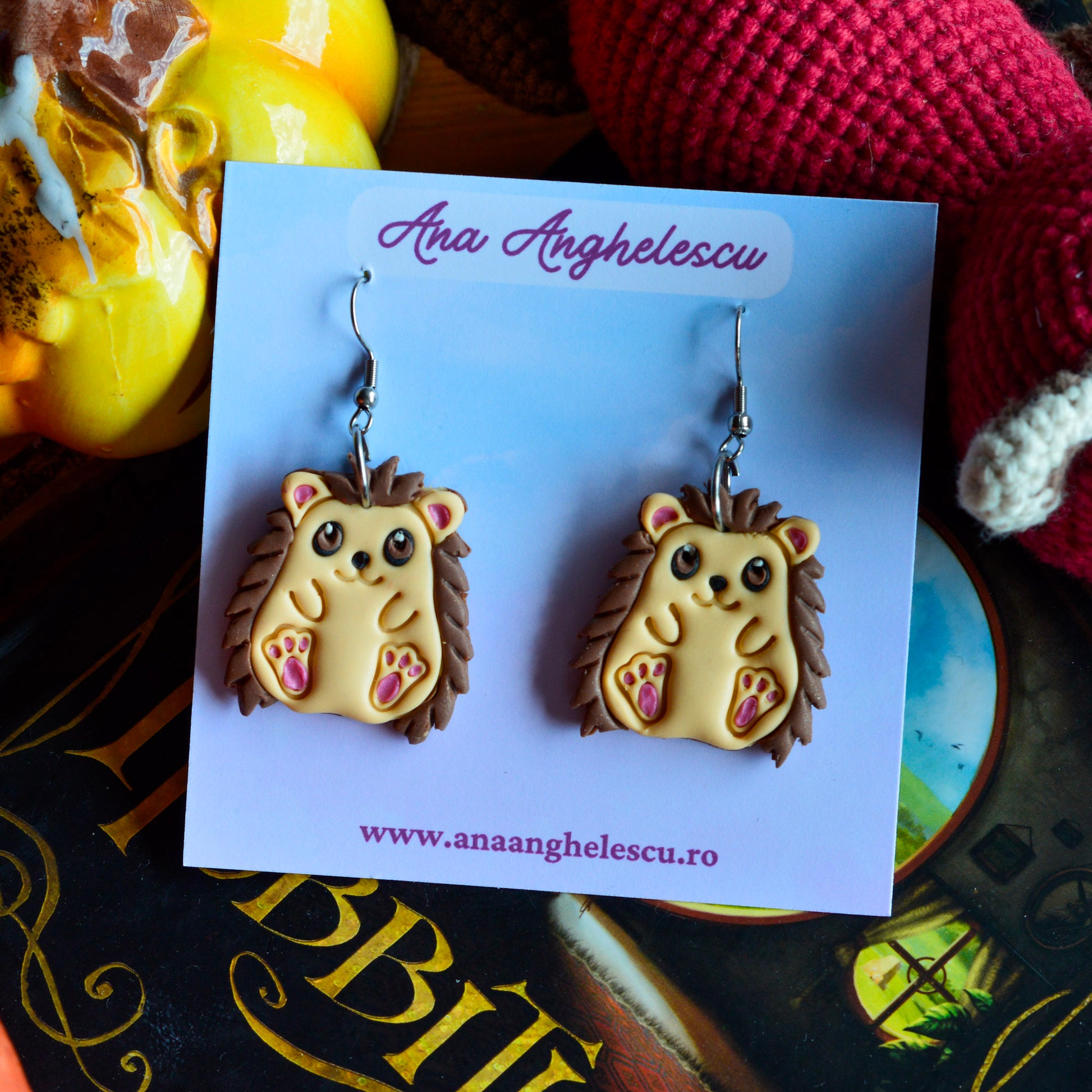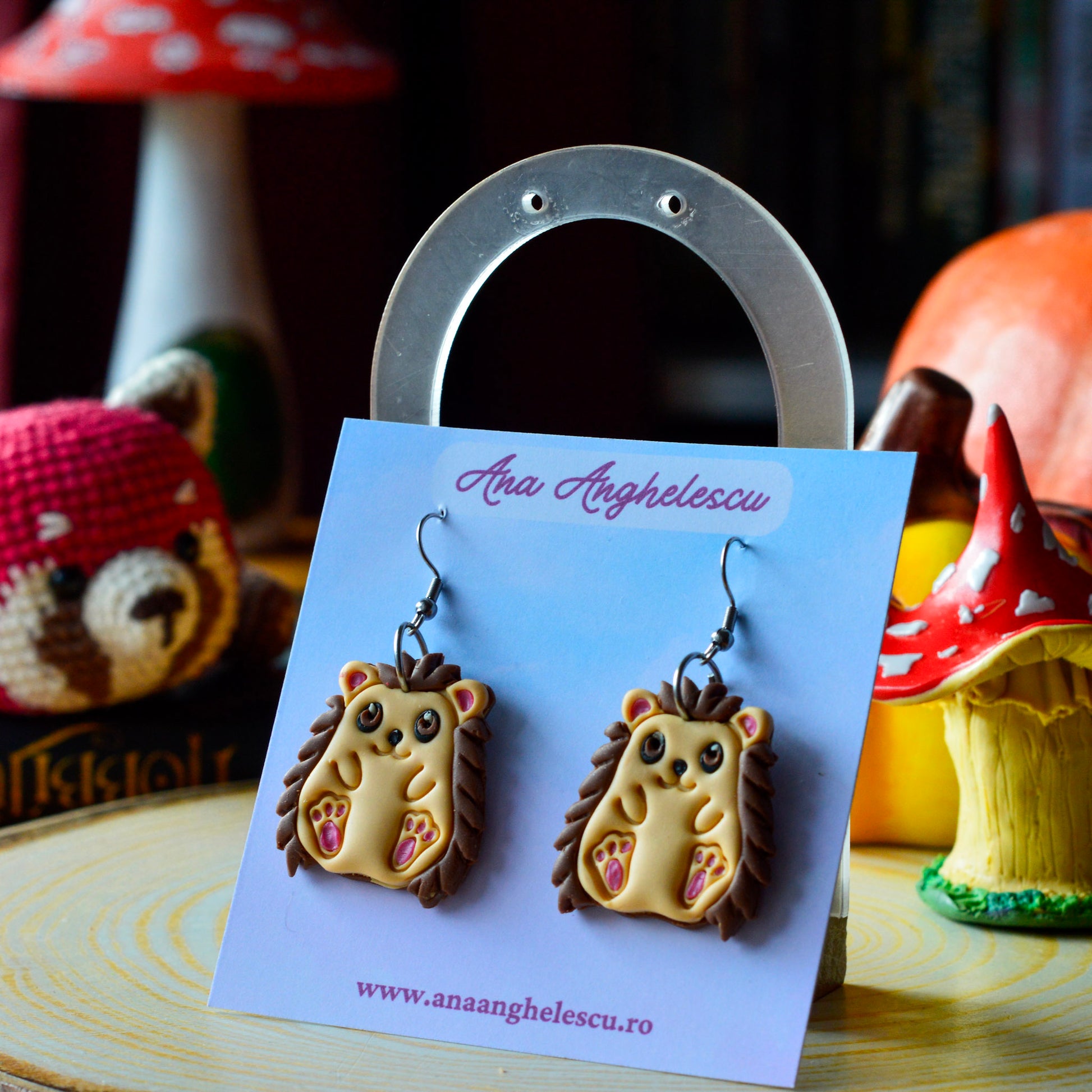 Cercei lucrați manual din lut polimeric. Acești cercei fac parte din colecția de toamnă și pot fi accesorizați la orice ținută.