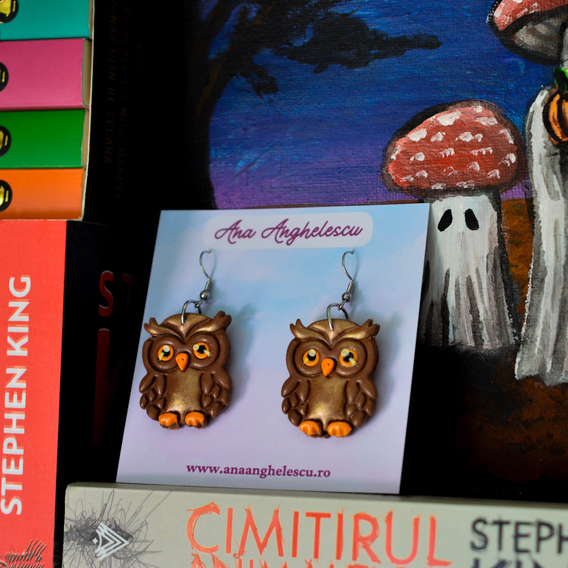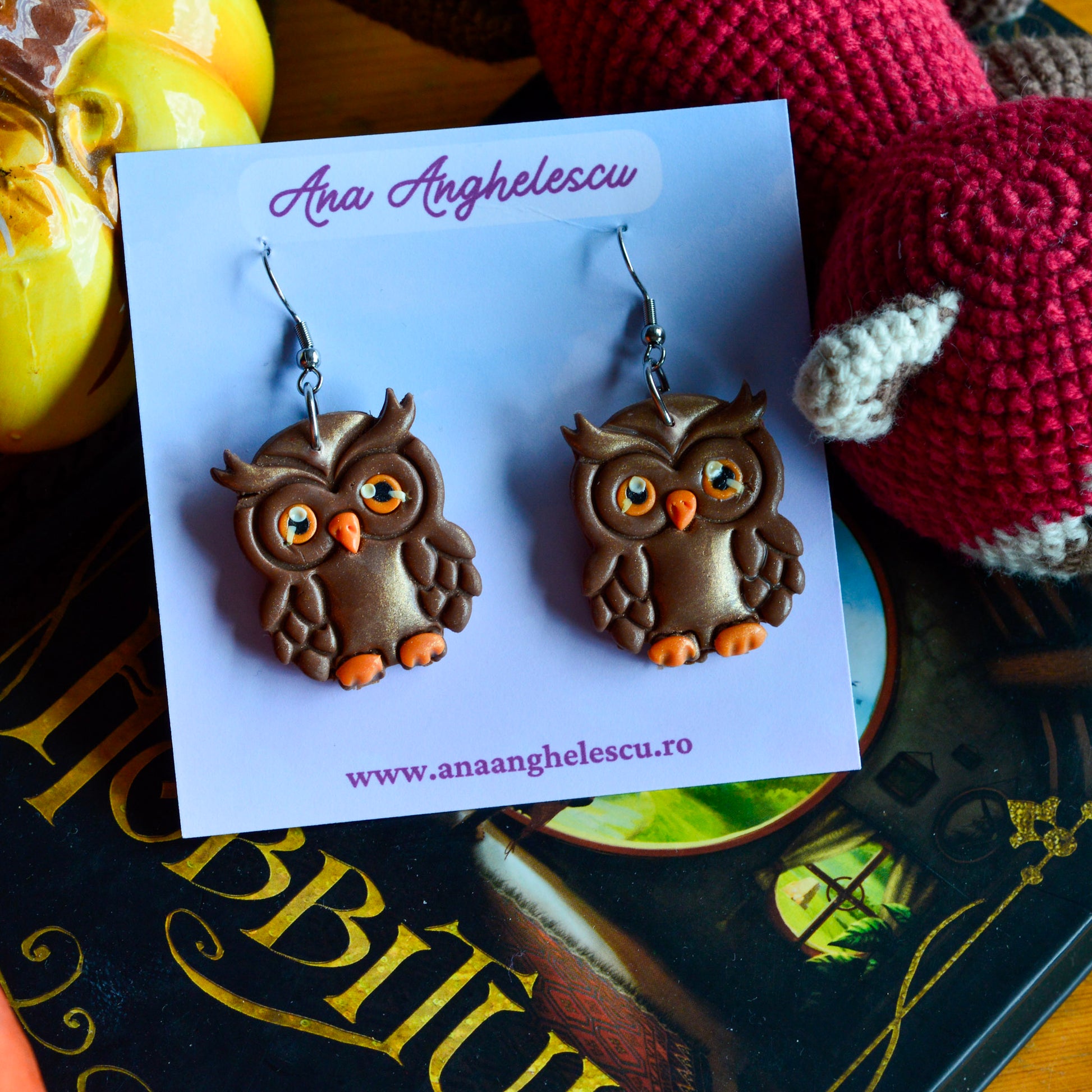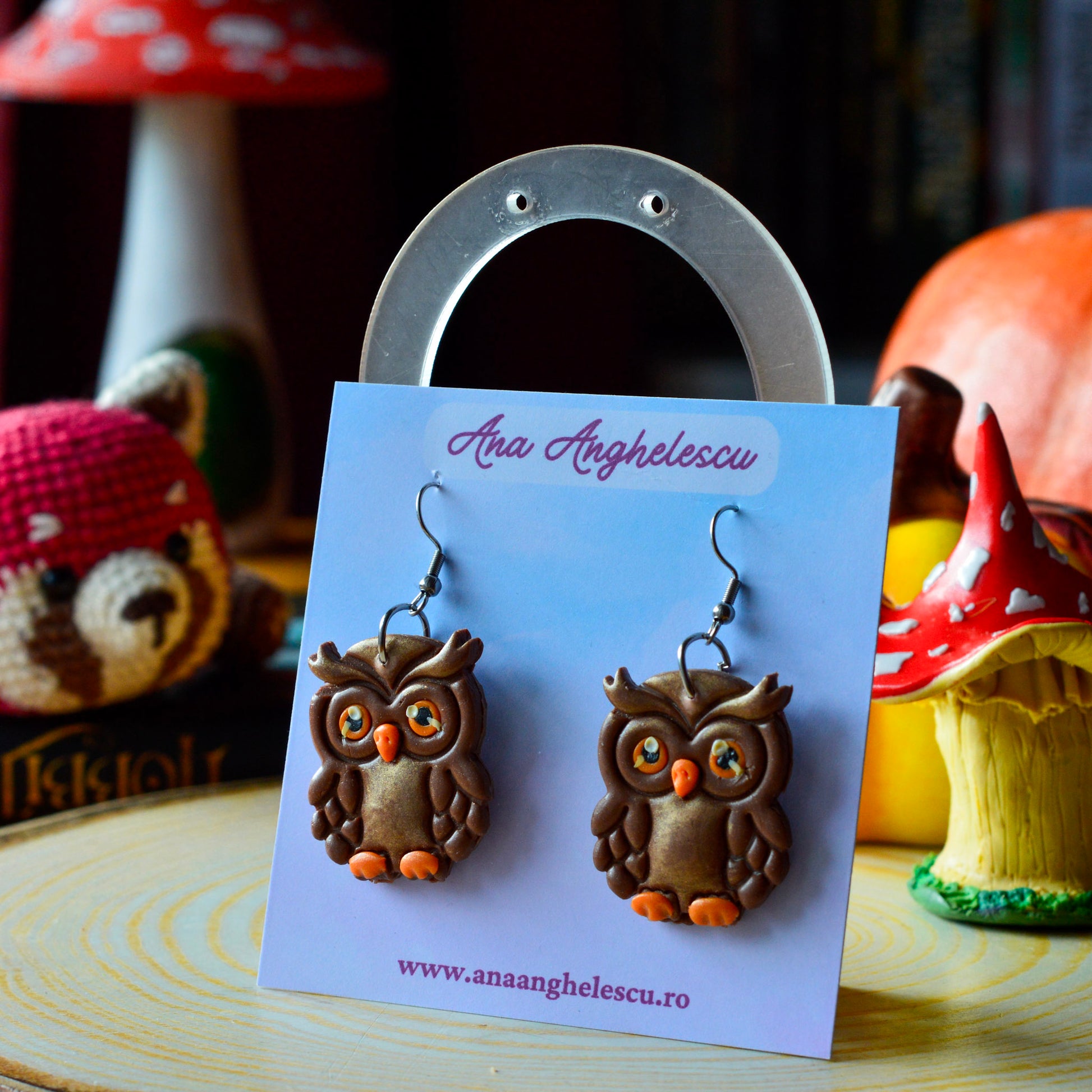 Cercei lucrați manual din lut polimeric. Acești cercei fac parte din colecția de toamnă și pot fi accesorizați la orice ținută.