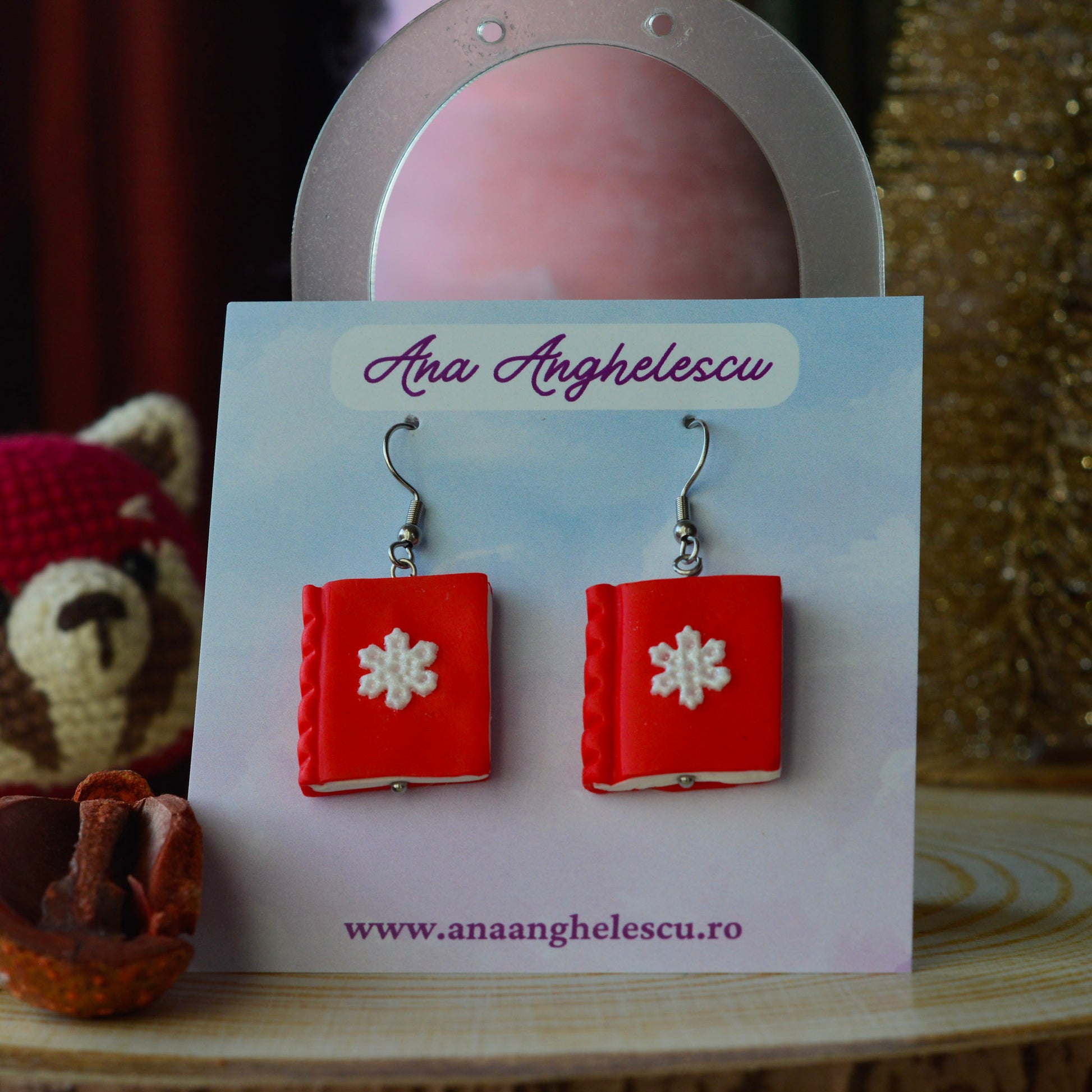 Cercei lucrați manual din lut polimeric. Acești cercei fac parte din colecția de iarnă și pot fi accesorizați la orice ținută.