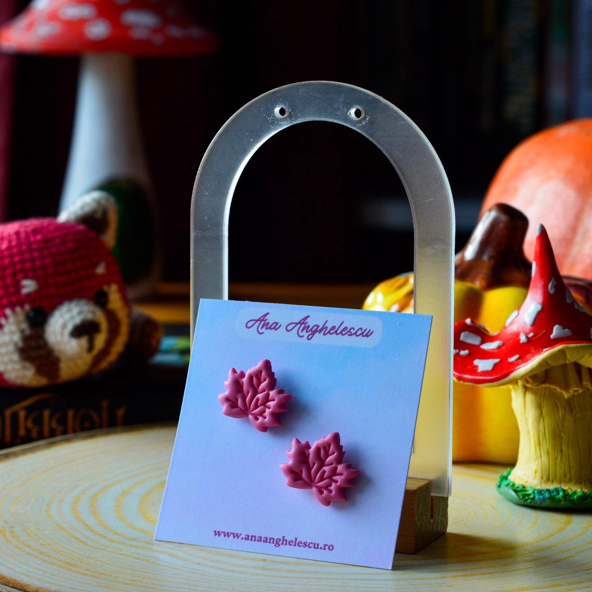 Cercei stud frunză roz