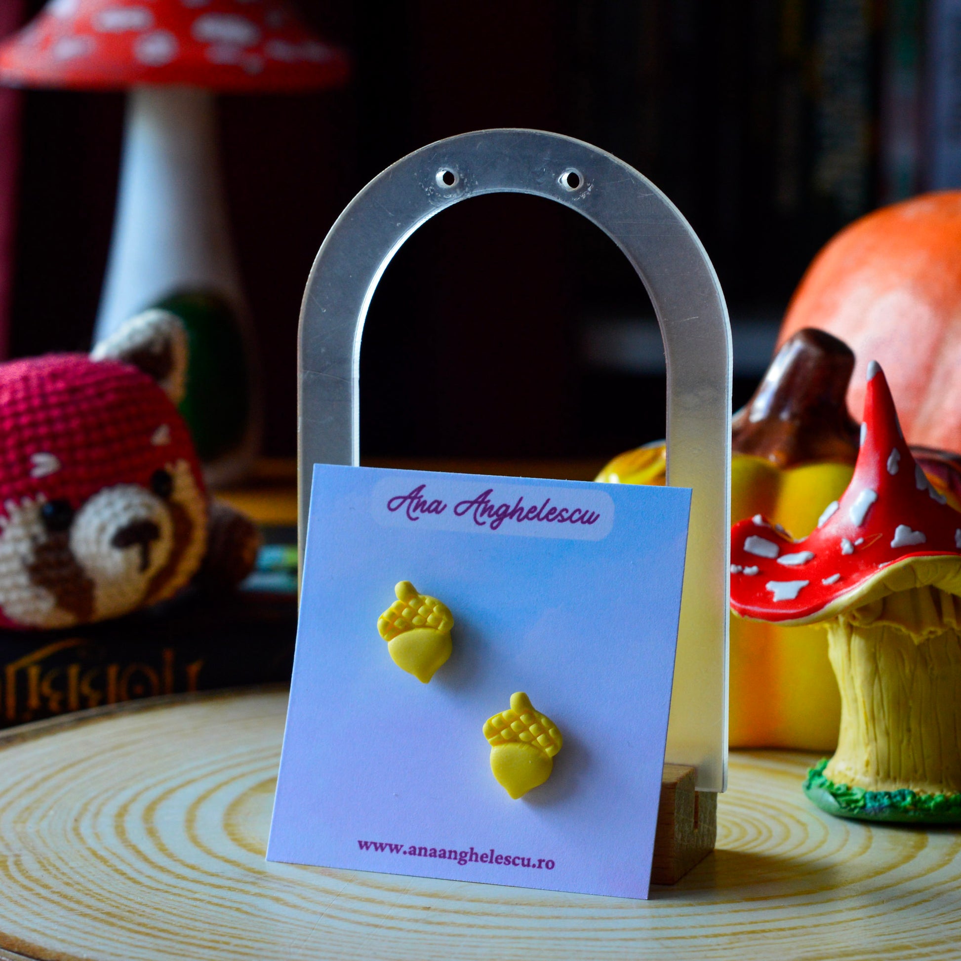 Cercei stud ghindă galbenă