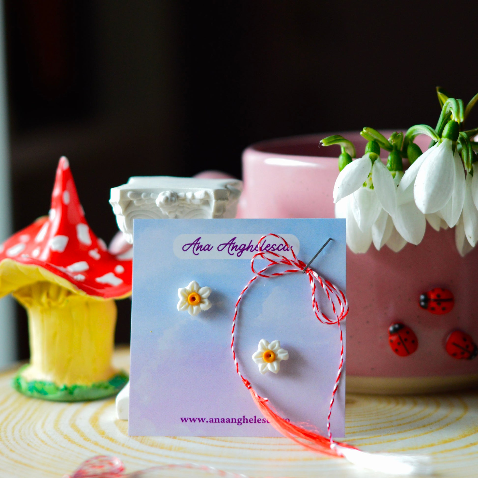 Cercei stud narcisă albă