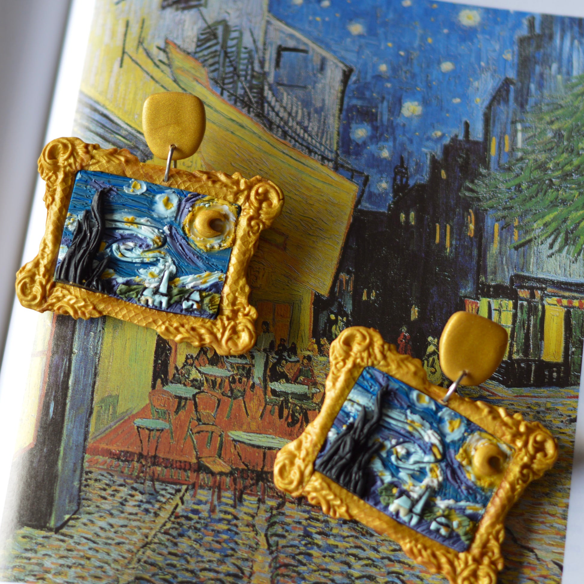 Cercei înspirați din pictura celebră ,,O noapte înstelată” a lui Vincent Van Gogh. Cerceii se realizează în momentul în care primesc comanda.