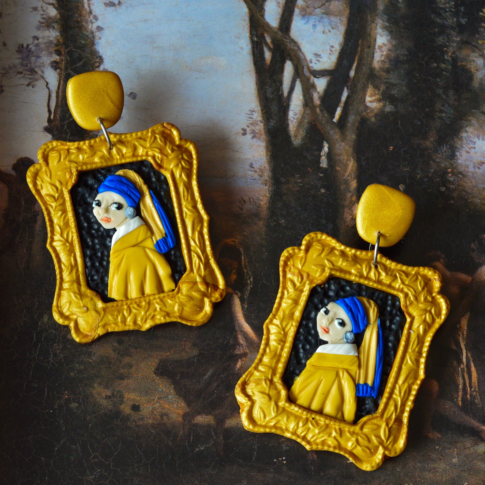 Cercei înspirați din pictura celebră ,,Fată cu cercel de perlă” a lui Jan Vermeer van Delft. Cerceii se realizează în momentul în care primesc comanda.