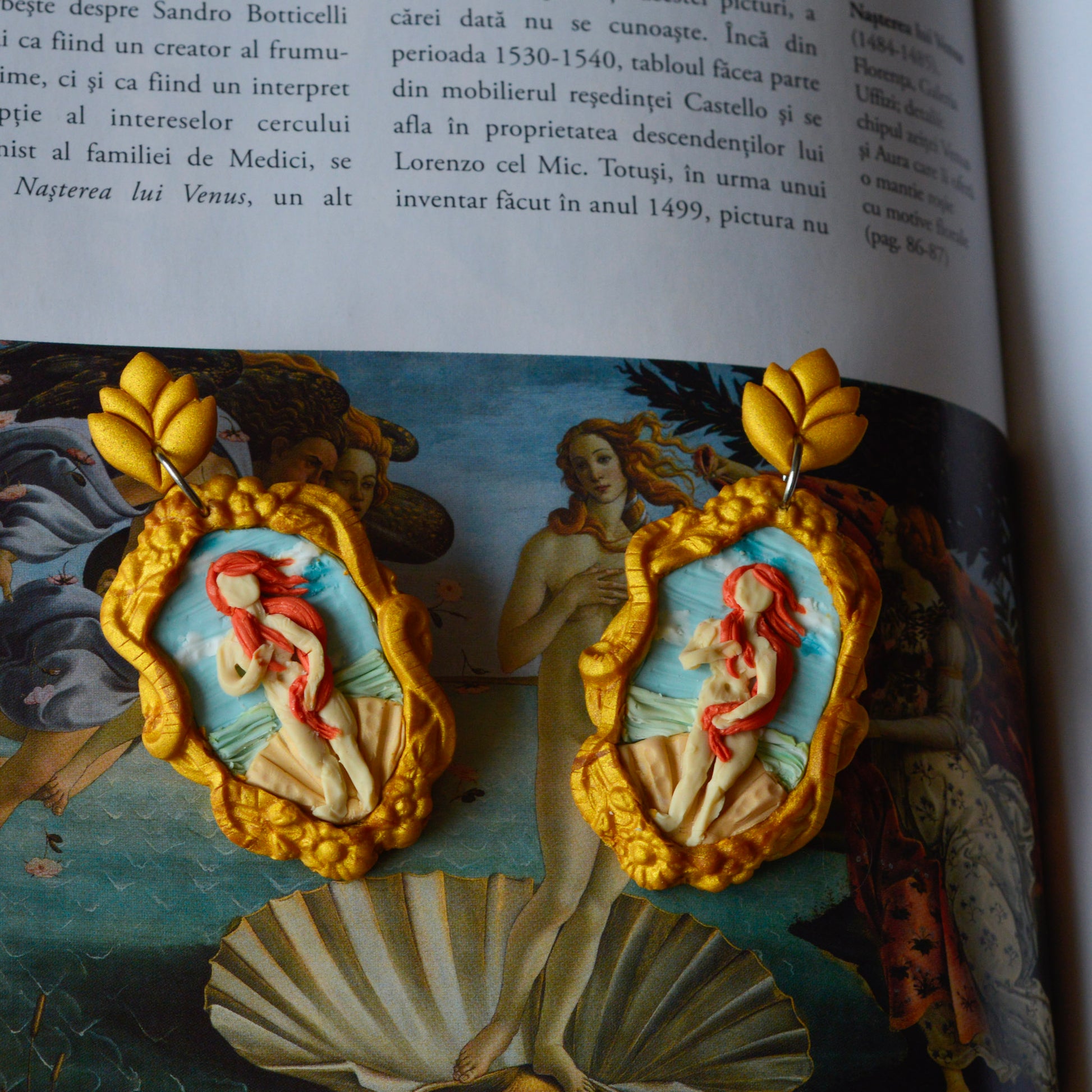 Cercei înspirați din pictura celebră ,,Nașterea Venerei” a lui Sandro Botticelli. Cerceii se realizează în momentul în care primesc comanda.