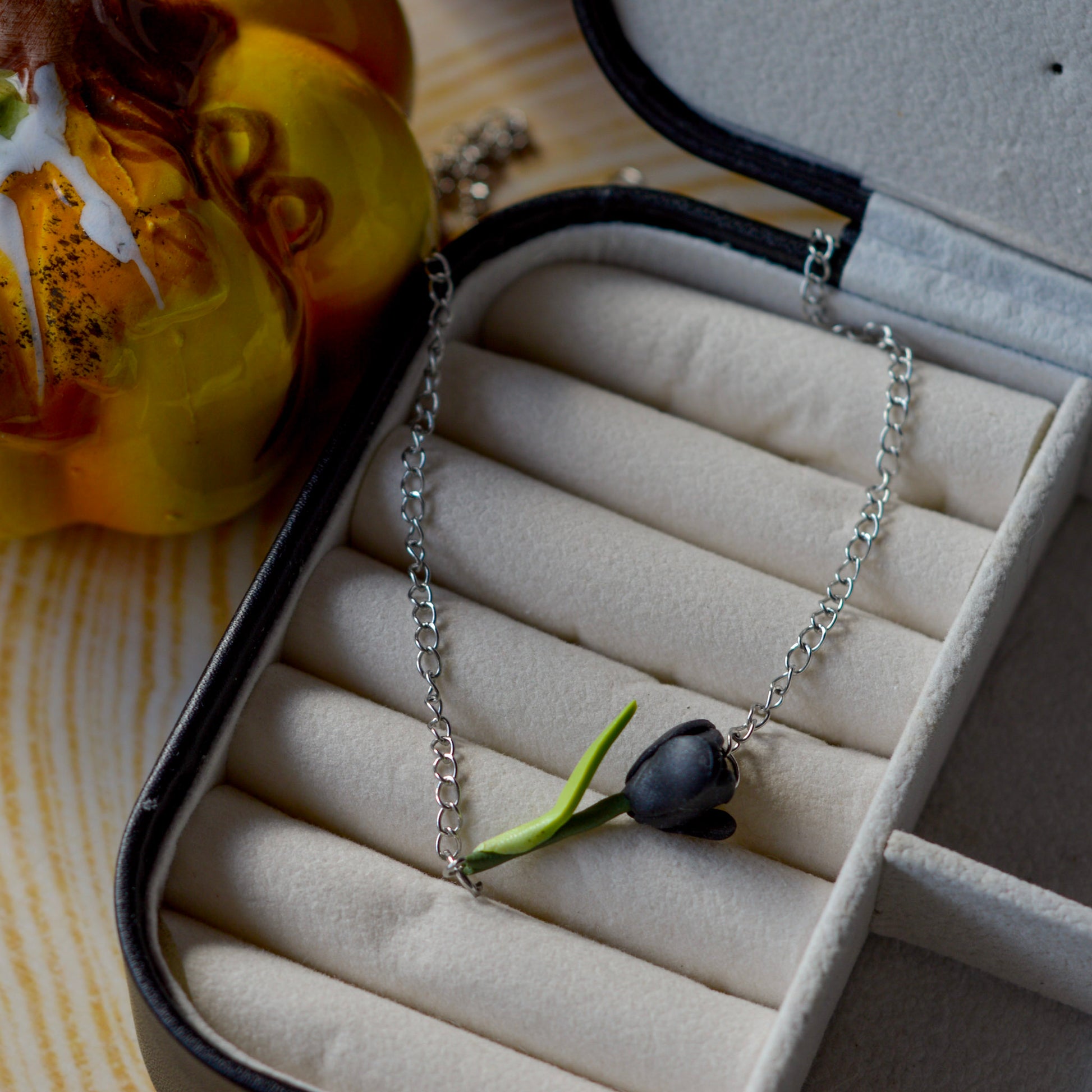 Pandantiv cu lalea neagră, lucrat manual din lut polimeric.