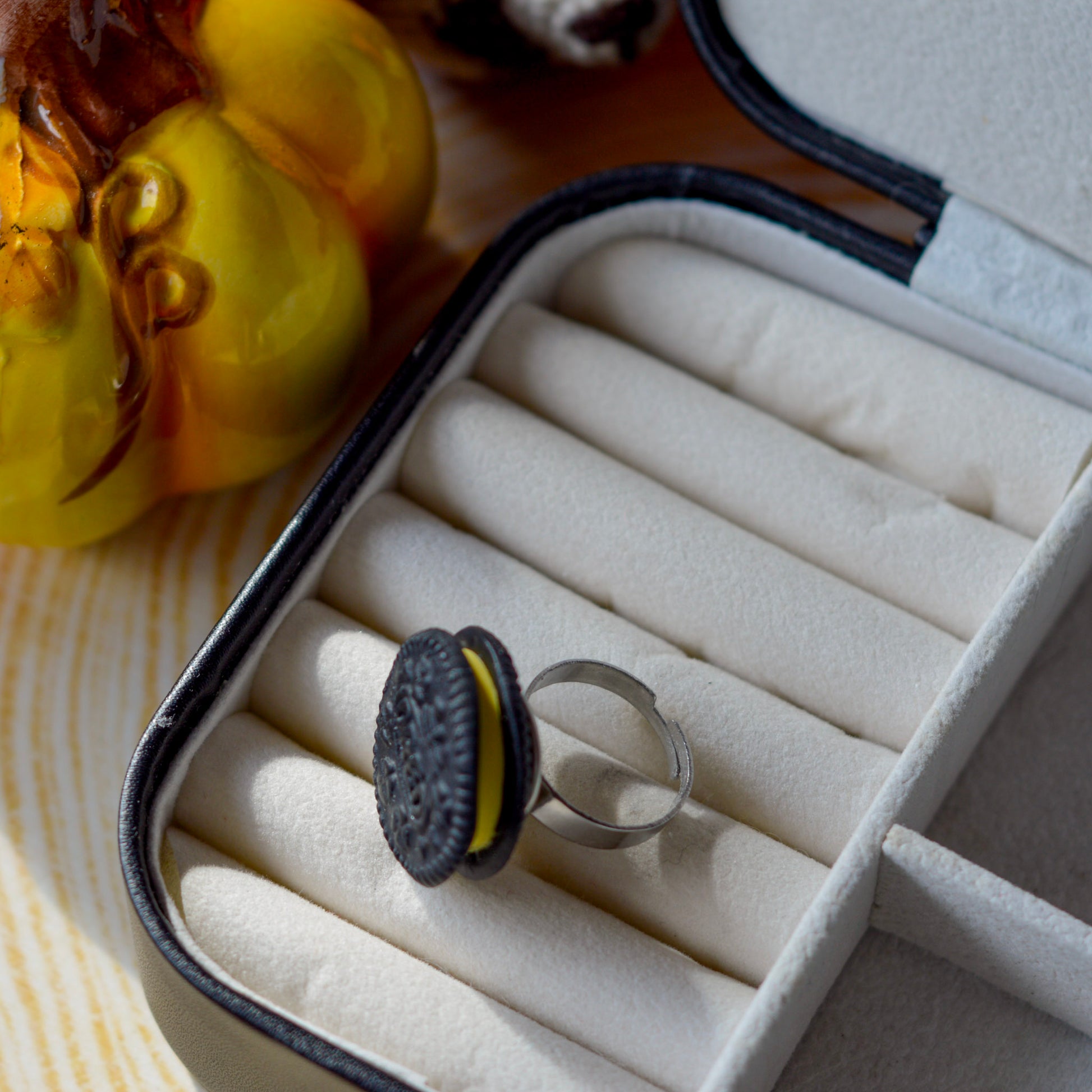 Inel din inox reglabil cu model din lut polimeric.