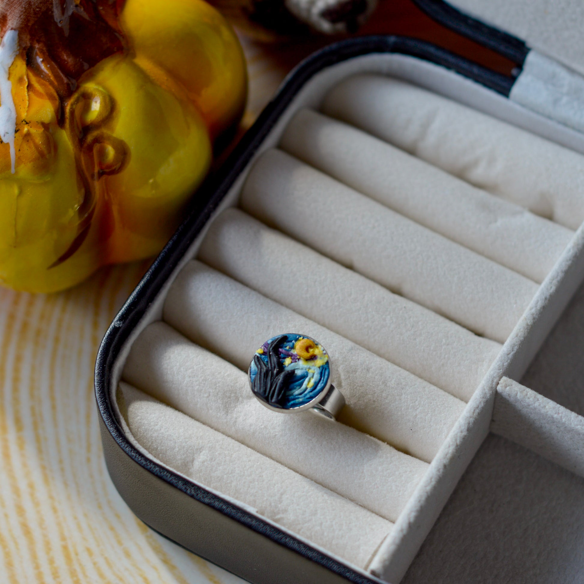 Material: lut polimeric, baza inelului este reglabia si este din inox.