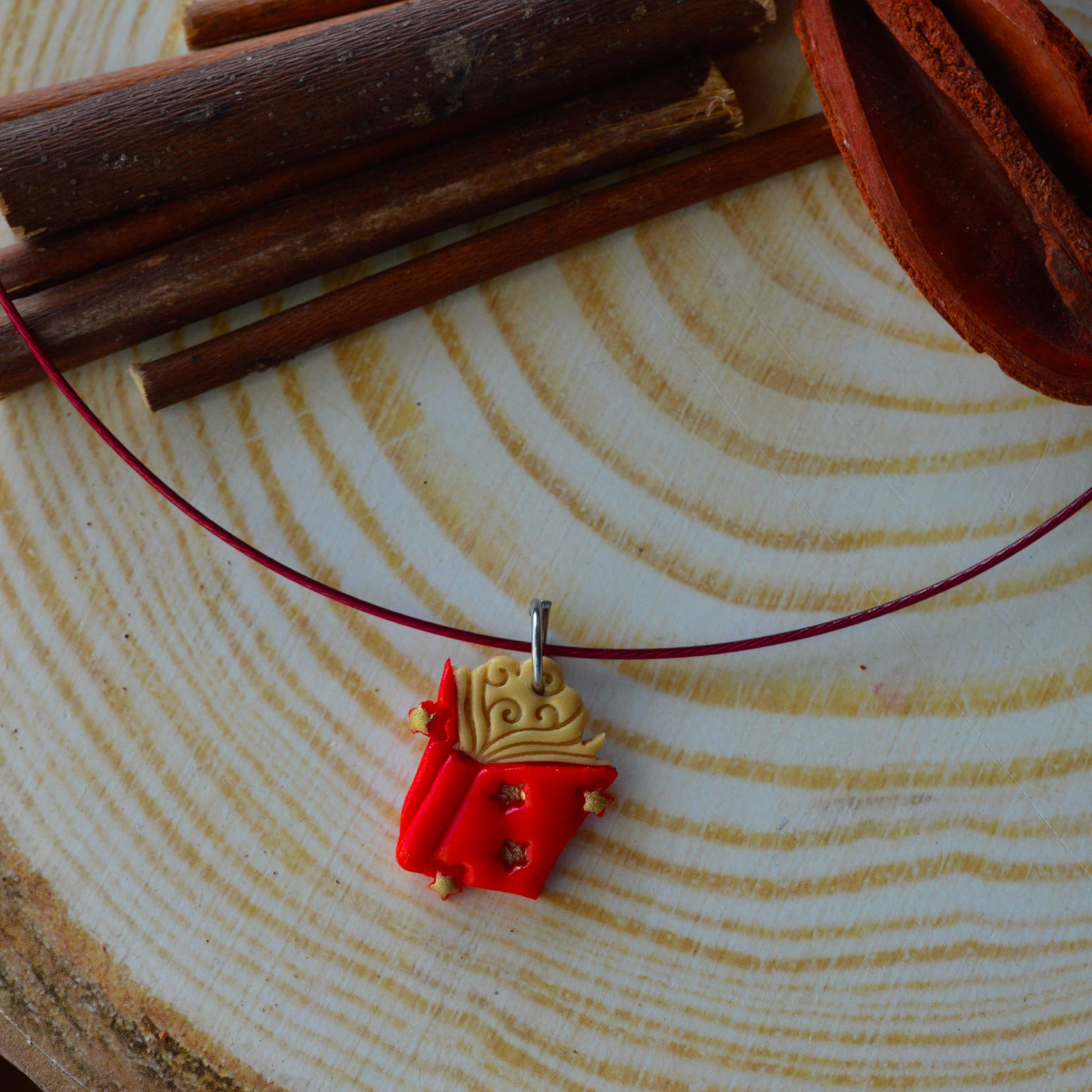 Pandantiv lucrat manual din lut polimeric.